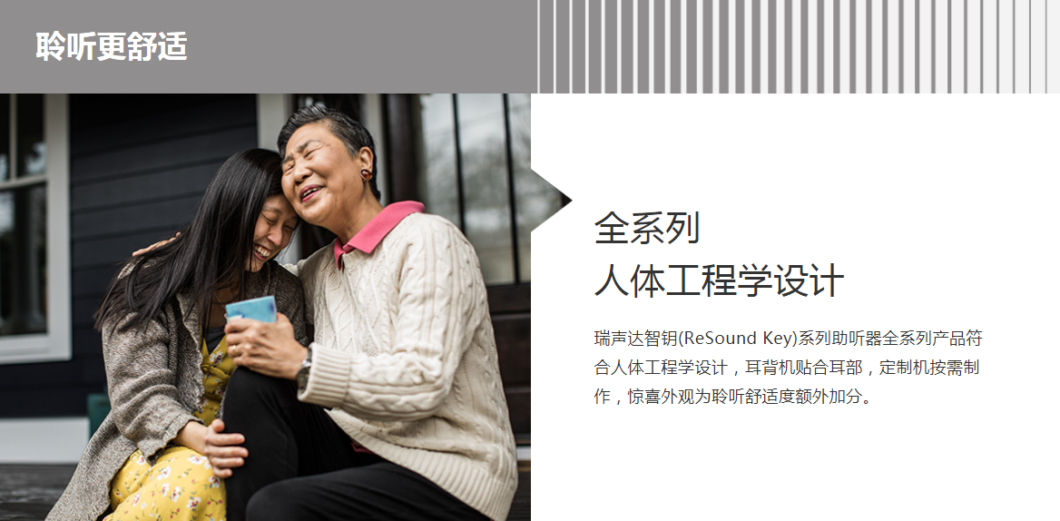 瑞聲達智鑰(ReSound Key)系列助聽器,關注用戶體驗,著眼于“聽得更清楚”、“聆聽更舒適”以及“使用更便捷”,集結以下用戶關注的 7大方面,為您提供完整的聽力解決方案,開啟聆聽新旅程。