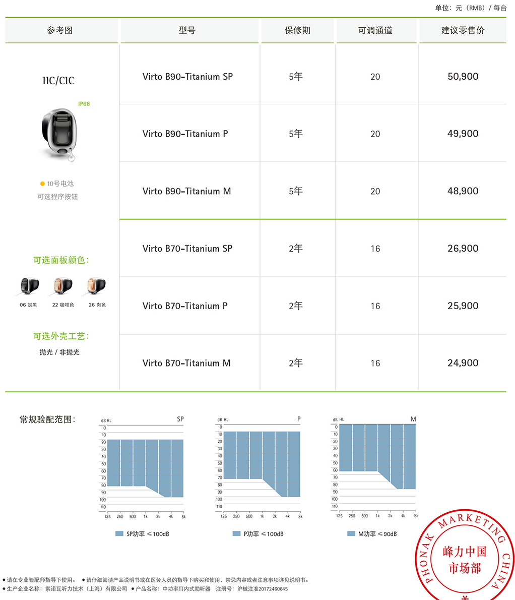 峰力鈦斗系列無線隱形深耳道式定制